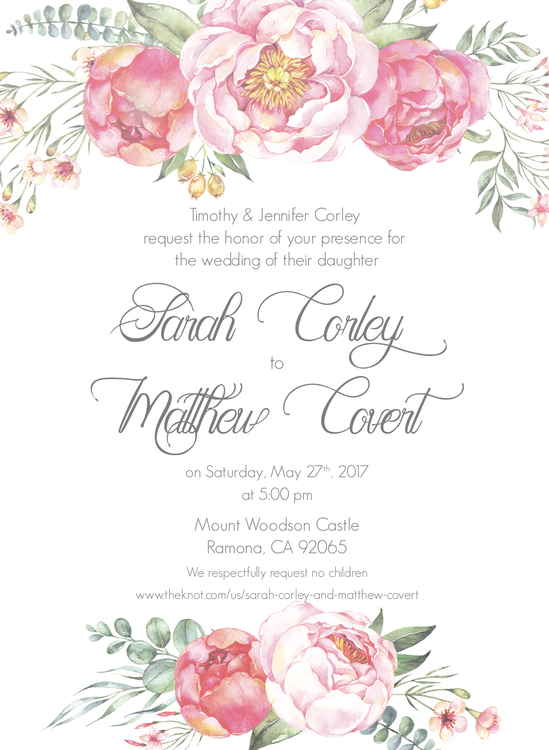 My next bride is actually soon to be my sister in law. When my brother proposed to Sarah we actually hadn't talked in several years. With the new addition to our family we reconnected and I offered to their invites. This was a challenging project for me, not only did I want them to be perfect for my client, but I felt extra invested and these were for family. After a bit of back and forth on flowers, we settled on garden roses and peonies for their spring wedding. These will be printed on an ivory paper to give it a classic feel. We kept the RSVP postcards nice and simple, plus I'm a huge fan of the postcard as RSVP trend. It's cheaper, easier and saves some paper! I am really pleased with how these invites turned out and I am especially excited for this spring wedding.