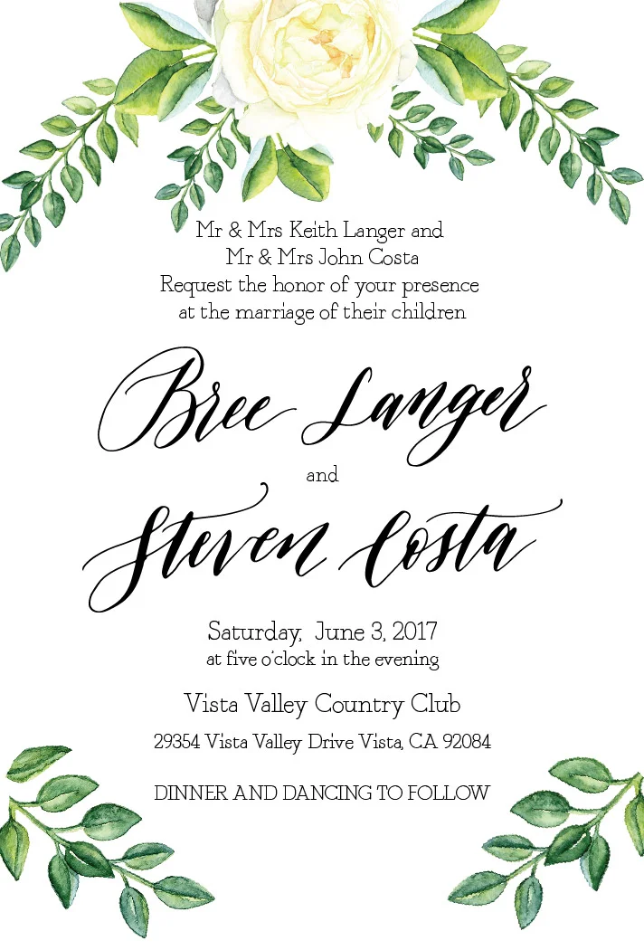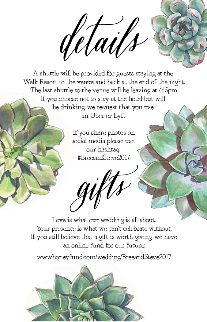 My final bride is actually one of my nearest and dearest friends from when I was in middle school. Bree and I have stayed in contact since we left 8th grade and went on to our public high school experiences and then off to college. Bree lives in the same town as my husband's family so when we go back to California we've been able to get together. Bree's invites have been some of the most involved that I've designed in the last year or so. I was also able to work with a local calligrapher for the custom cursive headers on each page. I am so thrilled with how these invites have turned out and was so excited to have had the opportunity to design for someone so dear to me.